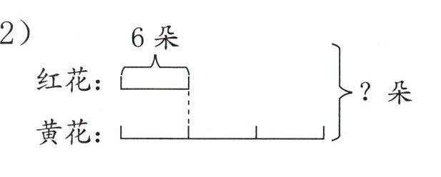 ③红花比紫花多的花每5朵扎一束,可以扎几束