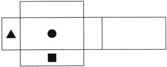 在一个长方体展开图中,相对的面是相隔一个长方形的两个面。由此可知,圆形面与正方形面是相对的面,三角形面与另一隐蔽的面是相对的面,剩下的两个长方形面是相对的面。在另一隐蔽的图形中标出与三角形面相同的图形,在圆形面的正对面标出与圆形面相同的图形,在正方形面的正对面标出与正方形面相同的图形。
