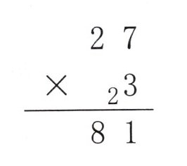 $\begin{array}{r}27\\×_{2}3\\\hline81\end{array} $