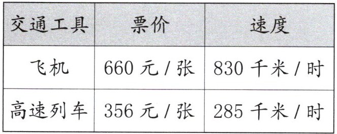 3. 爸爸带爷爷、奶奶去旅游,可采用右表中的两种出行方式。