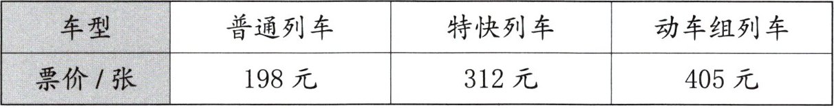 (4) 乐乐一家三口寒假准备去乙市旅游,三种不同火车的票价如下表: