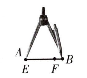 用圆规把$AB$的一端$A$与$EF$的一端$E$重合,调整圆规另一端到$B$点,保持圆规张开程度不变,将圆规另一端放到$F$点,发现$F$点在圆规另一端与$B$点重合时圆规的范围内,即$EF$长度小于圆规张开长度($AB$长度),所以$AB\gt EF$。