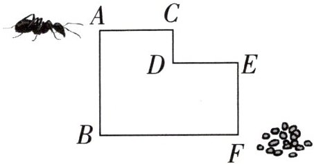4. 用圆规量一量蚂蚁从点 $ A $ 到点 $ F $ 的两条路线,哪条路线比较长?
