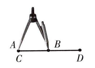 用圆规把$AB$的一端$A$与$CD$的一端$C$重合,调整圆规另一端到$B$点,保持圆规张开程度不变,将圆规另一端放到$D$点,发现$B$点在$CD$上,所以$AB\lt CD$。