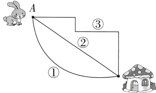 理由:两点之间所有连线中线段最短,路线①是线段,路线②和路线③是曲线(或折线),所以路线①最短。