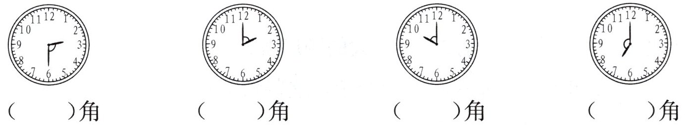 (3)下面各钟面上时针与分针形成的较小的角是什么角?