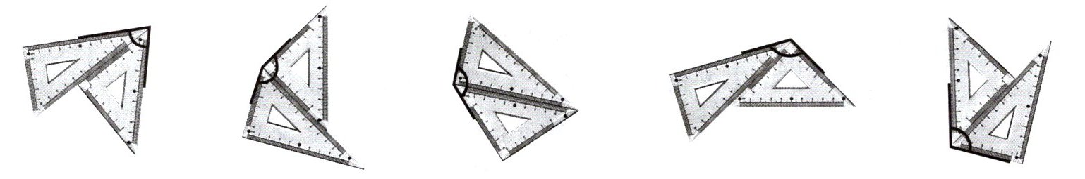 3. 观察下图,用一副三角尺拼出来的角各是什么角?填一填。