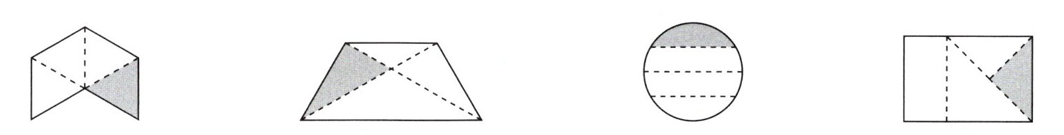 第三图(矩形):将矩形分成4个相等的小矩形或正方形,选择其中一个小矩形或正方形涂上颜色。