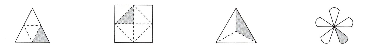 $\frac{1}{4}$,四分之一;$\frac{1}{8}$,八分之一;$\frac{1}{3}$,三分之一;$\frac{1}{6}$,六分之一
