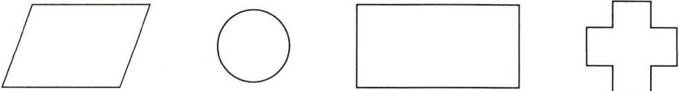 第四图(十字形):将十字形分成4个相等的部分(如四个小矩形或L形部分),选择其中一个部分涂上颜色。