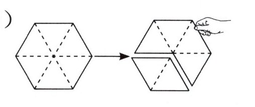 把正六边形看作单位“$1$”,从图中可知平均分成了$6$份,拿走$1$份后,剩下占原来的$\frac{5}{6}$,列式为$1 - \frac{1}{6}=\frac{5}{6}$