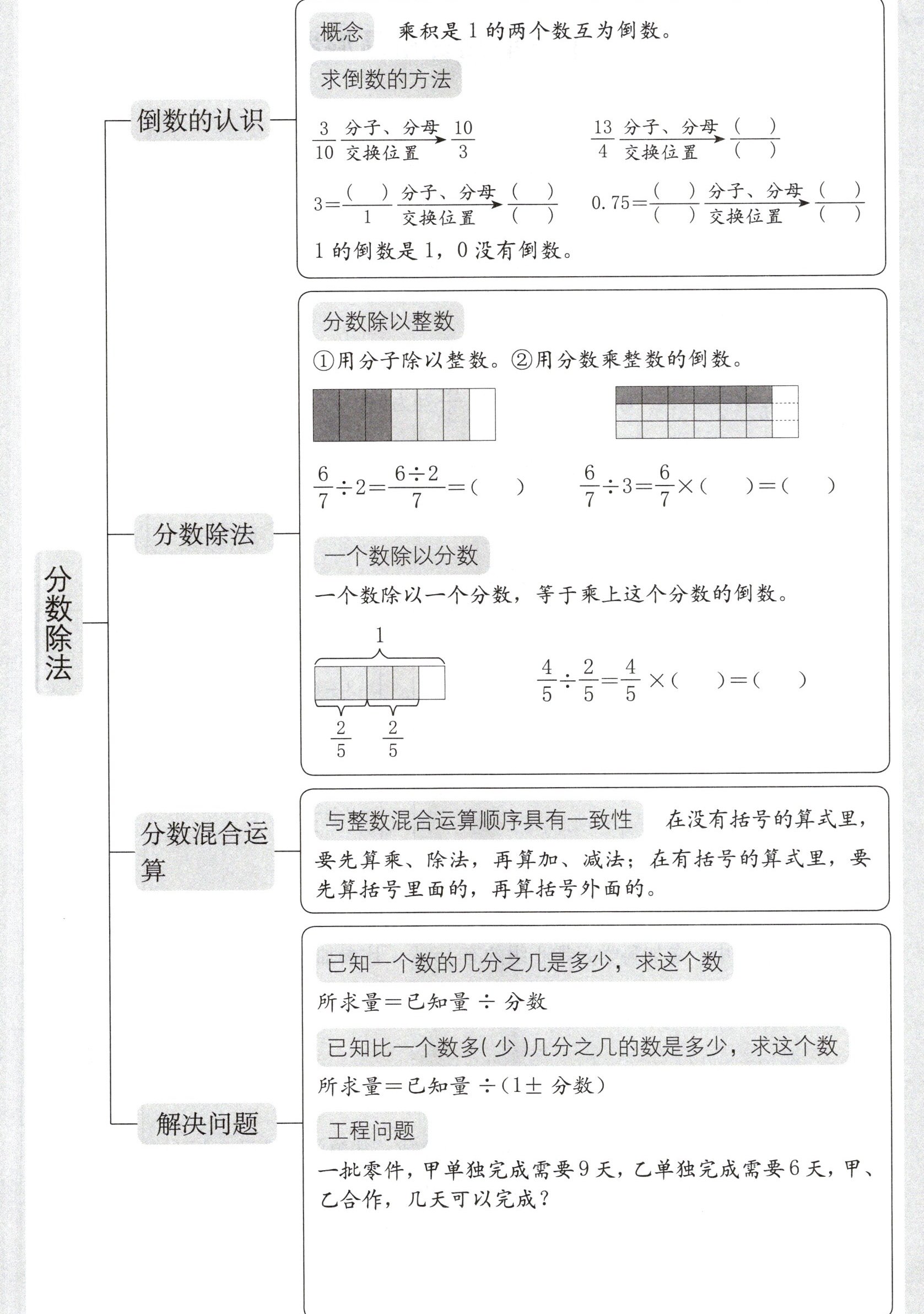 - ①用分子除以整数。②用分数乘整数的倒数。