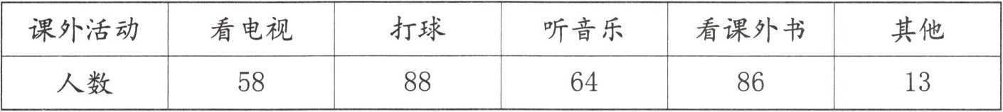 (2)某校六年级学生最喜欢的课外活动统计如下表。