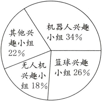 (3) 参加机器人兴趣小组的有多少人?250×34%=85(人)(答案不唯一)