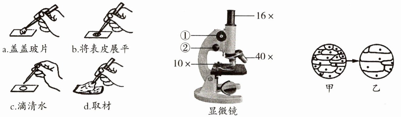 26. (9 分)如图是“制作并观察洋葱鳞片叶内表皮细胞临时装片”实验的相关操作,请据图回答问题。