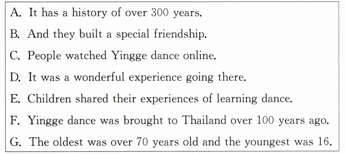 六、根据短文内容,从方框中选出五个句子填入文中空缺处,使短文内容通顺完整(其中有两项为多余选项)
