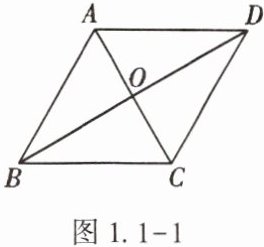 6. (★) 如图1.1 - 1,菱形ABCD的周长为16cm,∠ABC = 60°,对角线AC和BD相交于点O,则AC =__,BD =__。