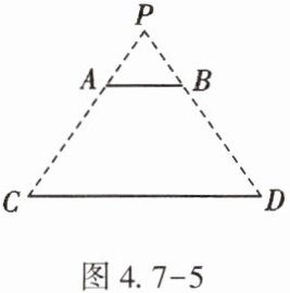 12. (★★)如图 4.7 - 5,光源$P$在横杆$AB$的正上方,$AB$在灯光下的影子为$CD$,$AB// CD$,$AB = 2m$,$CD = 6m$,点$P$到$CD$的距离是$4m$,则$AB$与$CD$间的距离是
