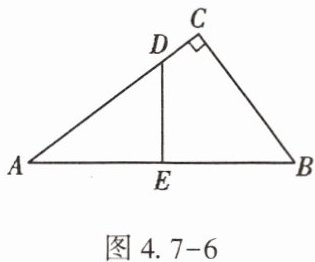 13. (★★)如图 4.7 - 6,在$Rt\triangle ABC$中,$\angle C = 90^{\circ}$,$D$是$AC$边上的一点,$DE$垂直平分$AB$,垂足为$E$. 若$AC = 8$,$BC = 6$,则线段$DE$的长度为