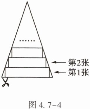 11. (★★)一张等腰三角形纸片,底边长$15cm$,底边上的高长$22.5cm$. 现沿底边依次从下往上裁剪宽度均为$3cm$的矩形纸条(如图 4.7 - 4). 已知剪得的纸条中有一张是正方形,则这张正方形纸条是第