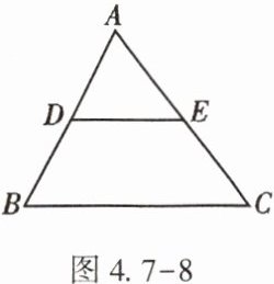 3. (★)如图4.7-8,已知△ADE∽△ABC,其面积之比为1:4,则△ADE与△ABC的相似比为【】