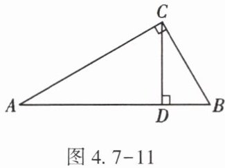 8. (★)如图4.7-11,在Rt△ABC中,∠ACB=90°,∠A=30°,CD⊥AB于点D,则△BCD与△ABC的周长之比为【】