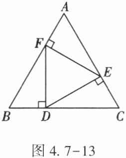 11. (★★)如图4.7-13,在正三角形ABC中,D,E,F分别是BC,AC,AB上的点,DE⊥AC,EF⊥AB,FD⊥BC,则△DEF的面积与△ABC的面积之比为