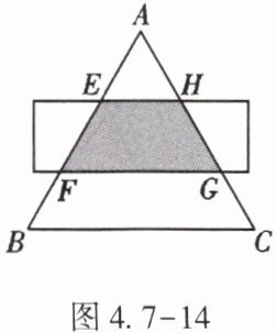 12. (★★)如图4.7-14,△ABC是等边三角形,被一平行于BC的矩形所截,AB被截成三等份,则图中阴影部分的面积与△ABC的面积之比为