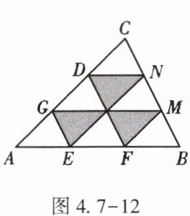10. (★★)如图4.7-12,在△ABC中,如果AB=30cm,BC=24cm,CA=27cm,AE=EF=FB,EG//DF//BC,FM//EN//AC,图中阴影部分三个三角形周长的和为【】