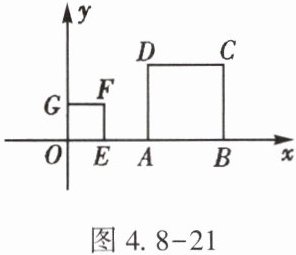 13. (★★★)如图 4.8 - 21,正方形 OEFG 和正方形 ABCD 是位似图形,点 F 的坐标为(1,1),点 C 的坐标为(4,2),则这两个正方形位似中心的坐标是
