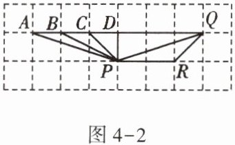 6. (★★)如图 4 - 2 所示,$ \triangle PQR $ 在边长为 1 个单位长度的方格纸中,它的顶点在小正方形的顶点位置,其中点 $ A $,$ B $,$ C $,$ D $ 也是小正方形的顶点,那么与 $ \triangle PQR $ 相似的是【 】