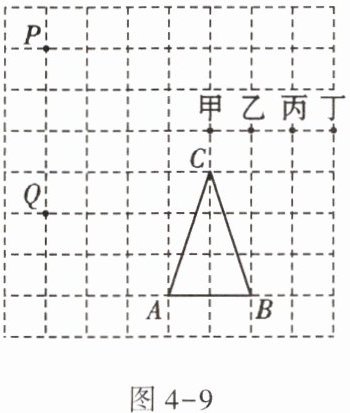15. (★★)如图 4 - 9,若 $ A $,$ B $,$ C $,$ P $,$ Q $ 和甲、乙、丙、丁都是方格纸中的格点,为使 $ \triangle ABC \sim \triangle PQR $,则点 $ R $ 应是甲、乙、丙、丁四点中的【 】