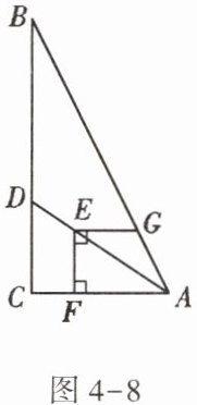14. (★)如图 4 - 8,在 $ Rt \triangle ABC $ 中,$ \angle ACB = 90^{\circ} $,$ AC = 6 $,$ BC = 12 $,点 $ D $ 在边 $ BC $ 上,点 $ E $ 在线段 $ AD $ 上,$ EF \perp AC $ 于点 $ F $,$ EG \perp EF $ 交 $ AB $ 于点 $ G $,若 $ EF = EG $,则 $ CD $ 的长为【 】