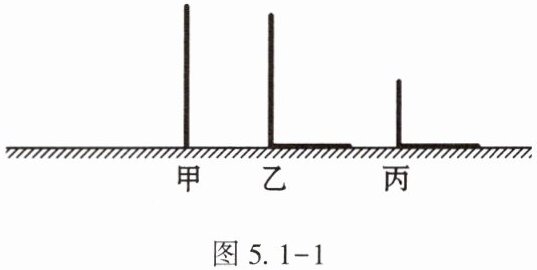 5. (★★)有三根垂直于水平地面的木杆甲、乙、丙,在路灯下乙、丙的影子如图5.1 - 1所示,试确定路灯灯泡的位置,再作出甲的影子.(不写作法,保留作图痕迹,指明结果)