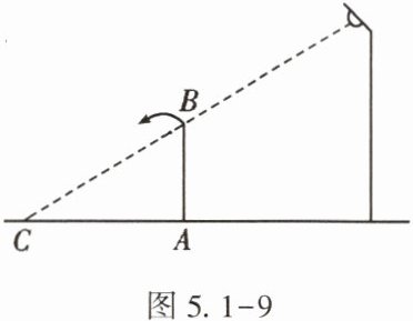 12. (★★)图5.1 - 9是一根直立于水平地面上的木杆AB在灯光下形成影子的示意图,当木杆绕A按逆时针方向旋转直至到达地面时,影子的长度发生变化.设AB垂直于地面时的影长为AC(假定AC>AB),影长的最大值为m,最小值为n,那么有下列结论:①m>AC;②m=AC;③n=AB;④影子的长度先增大后减小.其中正确结论的序号是