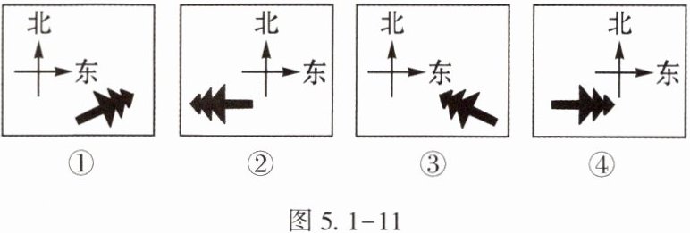 3. (★)图5.1 - 11是小华一天中从早上上学到下午放学不同时刻看到的一棵树的影子,将它们按时间顺序进行排列,正确的是【 】