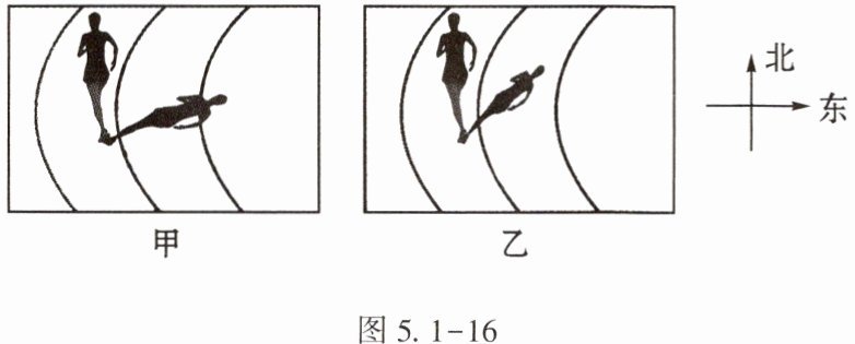 9. (★)一天下午,小红先参加了校运动会女子100m比赛,过一段时间又参加了女子400m比赛,图5.1 - 16是摄影师在同一位置拍摄的两张照片,那么下列说法正确的是【 】