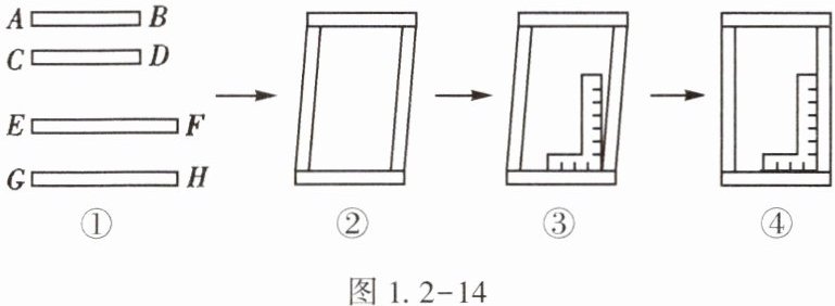 4. (★)工人师傅做铝合金窗框按图 1.2 - 14 中的三个步骤进行: