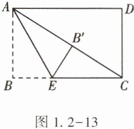 2. (★)如图 1.2 - 13,在矩形纸片 $ABCD$ 中,$AB = 2cm$,点 $E$ 在 $BC$ 上,且 $AE = EC$。若将纸片沿 $AE$ 折叠,点 $B$ 恰好与 $AC$ 上的点 $B'$ 重合,则 $AC =$