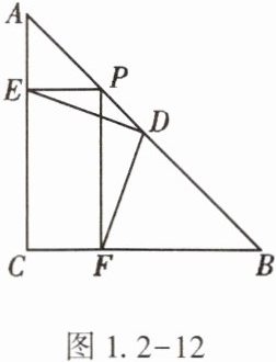 20. (★★★)如图1.2-12,在△ABC中,∠C=90°,AC=BC,AD=BD,PE⊥AC于点E,PF⊥BC于点F. 求证:DE=DF.