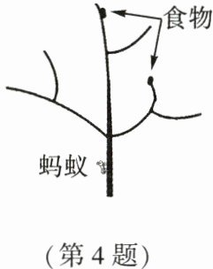 4. 一只蚂蚁在如图所示的树枝上寻觅食物,假定蚂蚁在每个岔路口都随机选择一条路径,则它获得食物的概率是(