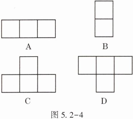 5. (★)图5.2-3是由4个大小相同的正方体搭成的几何体,其俯视图是图5.2-4中的【】