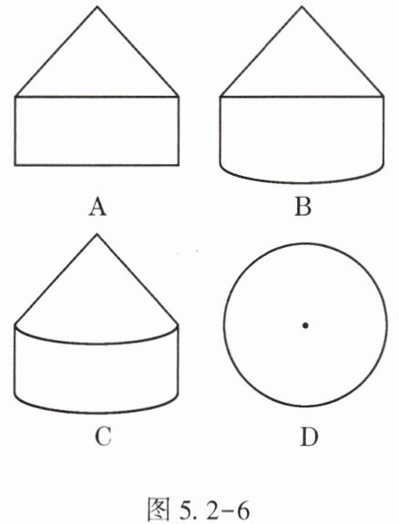 6. (★)一个由圆柱和圆锥组成的几何体如图5.2-5所示水平放置,则其主(正)视图为图5.2-6中的【】