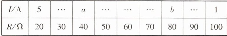 15. (★★)(2022·宜昌)已知经过闭合电路的电流$I(A)$与电路的电阻$R(\Omega)$是反比例函数关系.根据下表判断$a$和$b$的大小关系为【 】