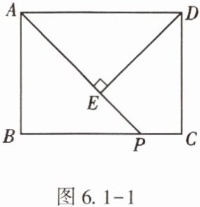 14. (★★)如图 6.1-1,矩形$ABCD$中,$P$是$BC$边上一动点,连接$AP$,过点$D$作$DE\perp AP$于点$E$.设$AP=x$,$DE=y$,若$AB=6$,$BC=8$,试求$y$与$x$之间的函数关系式.