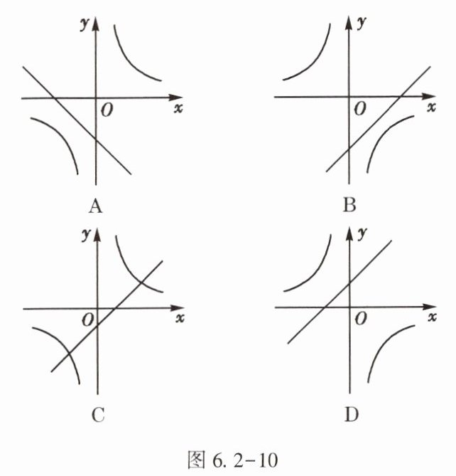 12. (★★)已知关于 $ x $ 的函数 $ y = k(x - 1) $ 和 $ y = -\frac{k}{x}(k \neq 0) $,它们在同一坐标系内的图象可能是图 6.2-10 中的【 】