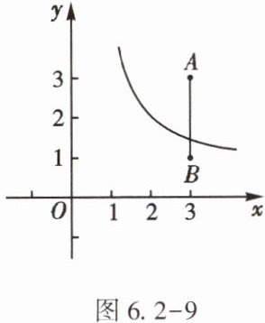 11. (★)(2023·河北)如图 6.2-9,已知点 $ A(3, 3) $,$ B(3, 1) $,反比例函数 $ y = \frac{k}{x}(k \neq 0) $ 图象的一支与线段 $ AB $ 有交点,写出一个符合条件的 $ k $ 的整数值: