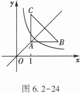 11. (★★)如图6.2-24,$Rt\triangle ABC$的顶点均在第一象限,$\angle BAC = 90^{\circ}$,$AB = AC = 2$,点$A$在直线$y = x$上,其中点$A$的横坐标为1,且$AB// x$轴,$AC// y$轴. 若双曲线$y=\frac{k}{x}(k\neq0)$与$Rt\triangle ABC$有交点,则$k$的取值范围是