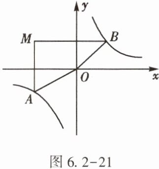 8. (★)如图6.2-21,在平面直角坐标系中,过点$M(-3,2)$分别作$x$轴、$y$轴的垂线,与反比例函数$y=\frac{4}{x}$的图象交于$A$,$B$两点,则四边形$MAOB$的面积为