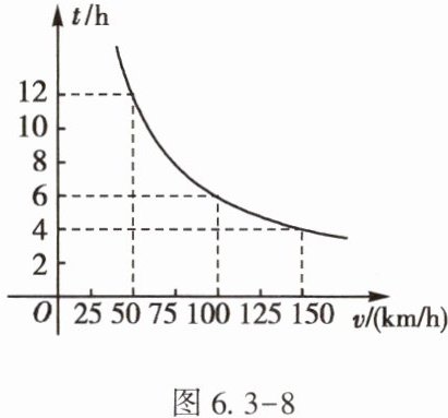 10. (★★) 一辆汽车从甲地开往乙地,随着汽车平均速度 $ v(km/h) $ 的变化,到达时间 $ t(h) $ 的变化情况如图 6.3 - 8 所示。